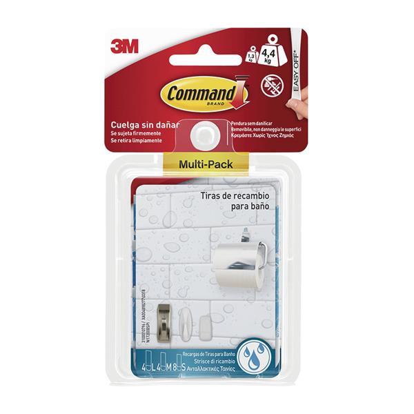 Cintas resistentes al agua. Sin necesidad de hacer agujeros. Se adhieren a multitud de superficies; paredes pintadas, madera, baldosas.Se retiran limpiamente, sin marcas, sin residuos pegajosos, ni manchas. Reutiliza los ganchos usando las tiras de repuesto. Kit 8 tiras pequeñas + 4 medianas + 4 grandes.